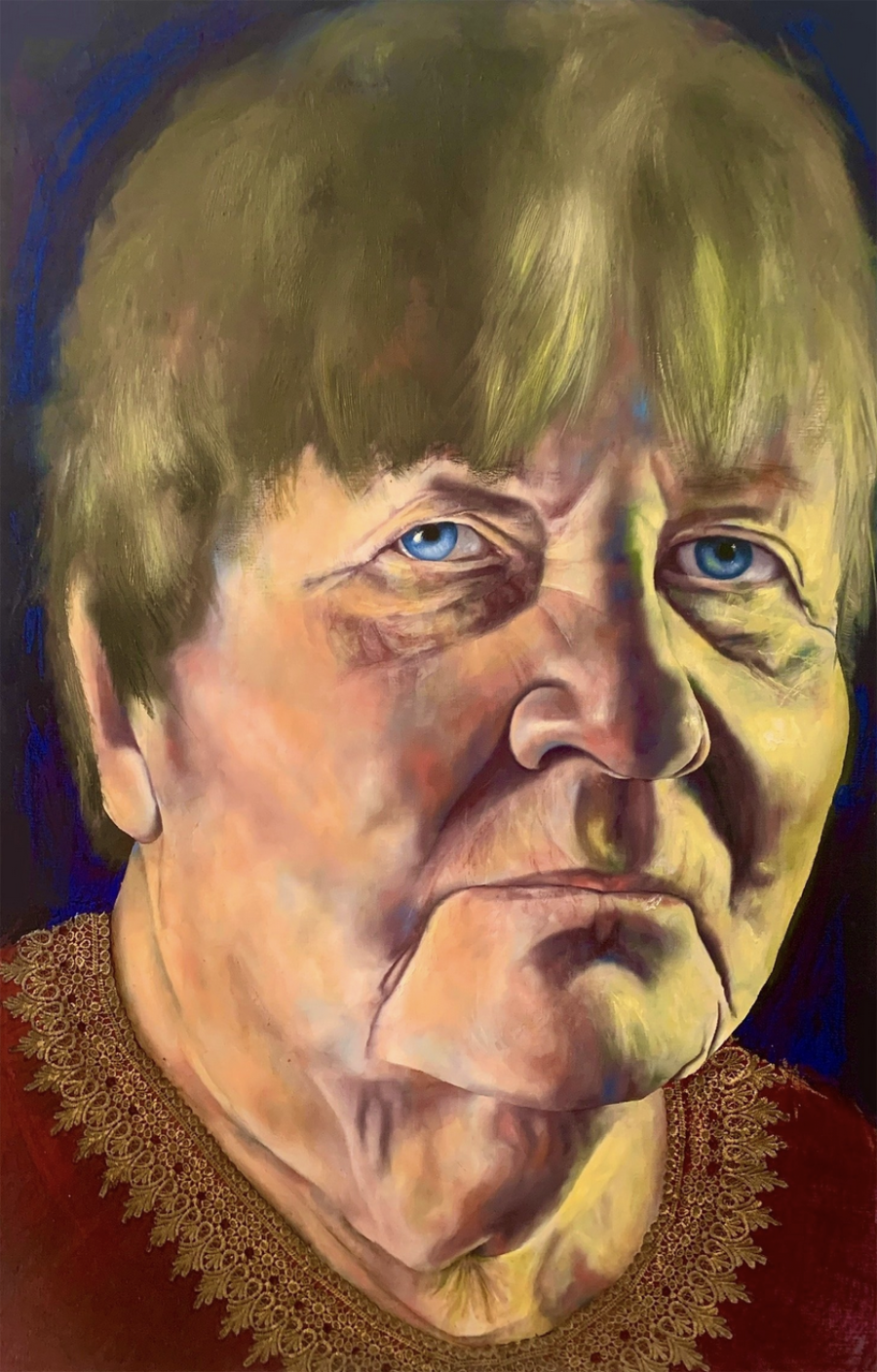 Portrait meiner Großmutter. Das Konzept basierte auf dem Gedanken, all ihre unterschiedlichen Emotionen in einem einzigen Bild einzufangen und ihren Charakter durch Farben und einen starken Ausdruck auszudrücken.
