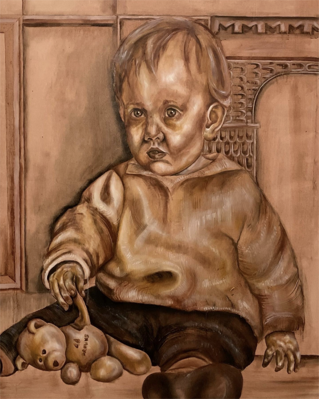 Dies ist die malerische Umsetzung eines meiner Kinderfotos. Ich habe mich zu dem Zeitpunkt sehr mit meiner Kindheit beschäftigt und mit dem Gedanken wie ich zu dem wurde, was ich heute bin. Aus künstlerischer Sicht stellt diese Arbeit nicht mein malerisches Können dar, denn die Details sind recht kindlich und entsprechen nicht meinem jetzigen malerischen Fähigkeiten. Doch dies habe ich hiermit beabsichtigt. Denn ich wollte etwas mit den Augen meines früheren Ichs kreieren und mein Fokus lag nicht an der perfekten Umsetzung, sondern an der Verbindung zu meinem kleinen Ich. Ich wollte, dass wir beide dieses Bild zusammen malen, mein erwachsenes und mein kindliches Ich.