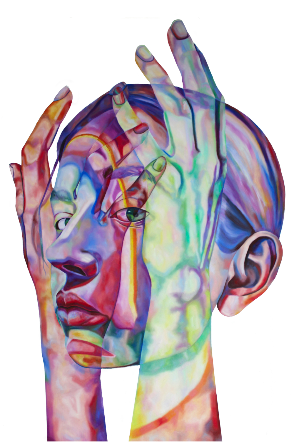 Dieses Bild ist bisher eines der Hauptwerke für einen neuen farbenfrohen Malstil, den ich geschaffen habe. Fun Fact über mich: Ich bin sehr sensibel, wenn es um Farben geht. Wenn mir also jemand vor ein paar Monaten gesagt hätte, dass ich bald so ziemlich alle Farben in ein Bild packen würde, hätte ich nur gesagt „oh, bitte nein„. Denn ich weiß, dass es manchen Menschen seltsam vorkommt, aber ich reagiere ziemlich stark auf bestimmte Farbkombinationen. Dennoch habe ich einen Weg gefunden, viele kleine einzelne Farbkombinationen zu einem großen Gesamtbild zu kombinieren. Und es hat sich irgendwie in ein Regenbogengesicht verwandelt, in dem alle Farben harmonisch zusammenwirken.